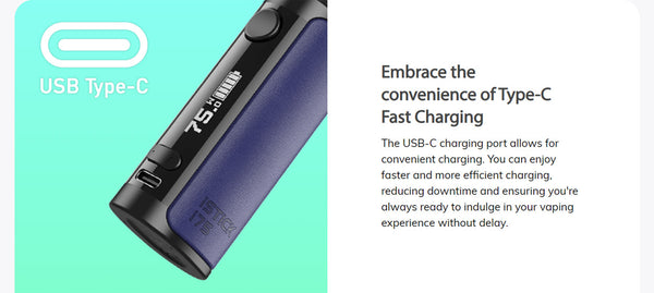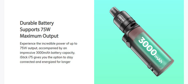 Eleaf iStick i75 Battery with stylish leather exterior is luxurious and comfortable to hold. It is powered by a built-in 3000mAh battery with 75W max and USB Type-C charging to bring you long-lasting vaping experience. As a powerful box mod, Eleaf iStick i75 is outstanding because of its durability and long-lasting performance. With a Type-C charging port, it is really convenient to recharge your kit via a Type-C charging cable. You can activate it by pressing only one button. It offers an optional UI interface to personalize your vaping and supports VV/VW mode. It is compatible with EP Pod Tank 5ml and EP Coil.