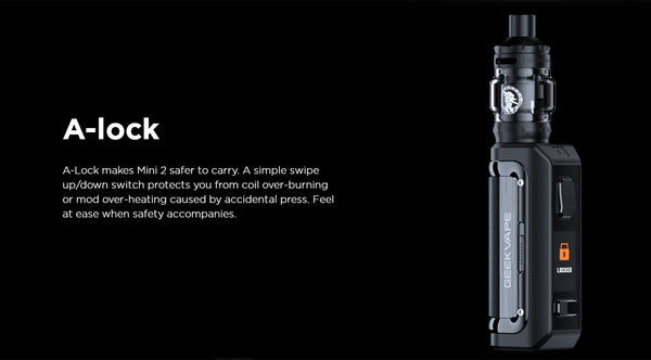 Geekvape M100 (Aegis Mini 2) Mod meets the new mini with new tri-proof. Aegis Mini 2 Kit with industry-leading IP68 rating water & dust resistance. Ground-breaking shock-resistance. An all-time stable output system. Built-in 2500mAh battery. Accidental press protection. Bigger screen with new UI. Type-C charging port with waterproof flip cover.