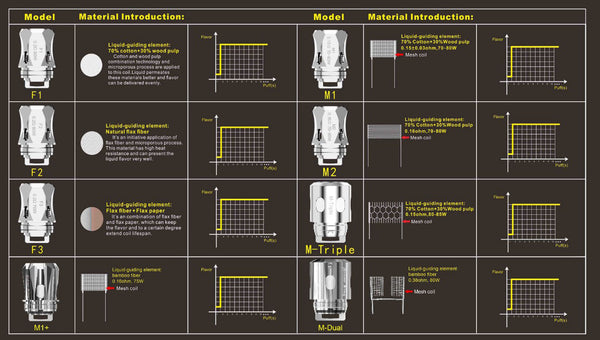 Resistance: M-Dual coil 0.38ohm, M1+ coil 0.16ohm