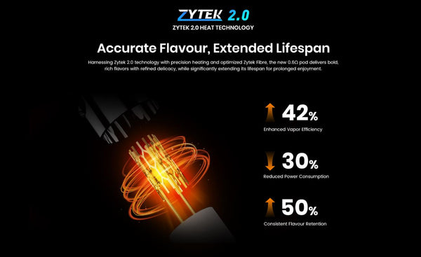 1. ZYTEK 2.0 Technology for consistent flavor and extended coil life