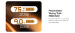 Eleaf iStick i75 Kit with stylish leather exterior is luxurious and comfortable to hold. It is composed of iStick i75 Device and EP Pod Tank 5ml. It is powered by a built-in 3000mAh battery with 75W max to bring you long-lasting vaping experience. Its OLED screen allows you to switch between VV (Variable Voltage) and VW (Variable Wattage) modes, granting you control over wattage levels from 1-75W and voltage from 0.5-9V. The EP Tank, with dual-side airflow control, offers a wide range of vaping experiences, from tight MTL to DL. This kit features a luxurious leather and metal construction, complete with a side-mounted round fire button for added convenience and comfort. With USB Type-C charging, it ensures a long-lasting vaping experience and supports EP Series Coils for rich clouds and enhanced flavo. Experience personalized vaping with the optional UI interface on this premium kit.