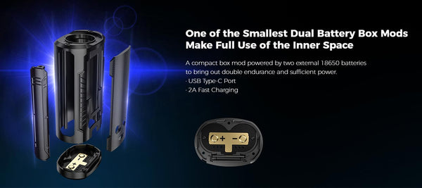 This box mod is powered by dual 18650 batteries and charged with a 2A USB Type-C cable. Besides being equipped with Freemax ultimate mesh technology, it also features Embedded IML Screen, Side Filling System, Multiple Output Modes, a large side fire Button, Two-Side Airflow Control, and FM CHIP 2.0, powerful enough to enhance your vaping experience.