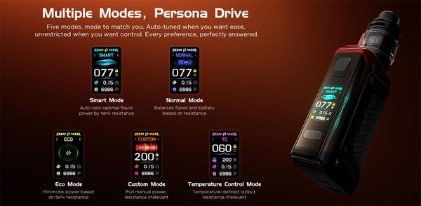 7. Multiple ergonomic fire modes: Smart, ECO, Normal, Boost, TC, and Custom (Memory) modes