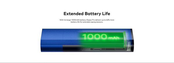 With its larger 1000mAh battery, Klypse Pro delivers up to 42% more battery life for extended vaping sessions.