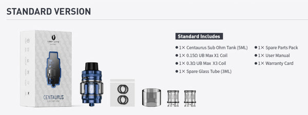 Lost Vape Centaurus Sub Ohm is a high dynamic Top-to-side Airflow System with industry-leading leakproof design.measures in at 26mm in diameter and can hold up to 5.0mL of e-liquid in its internal reservoir. is made of sturdy stainless steel and glass,, more easily to reach the coil to make better flavor and airflow control more precise. With the flavor turbo Lost vape UB Max Series Coil(0.15ohm(80-120W), 0.2ohm(60-80W), 0.3ohm(40-60w)),making a mouthful and enriching flavor and making cloud-chasing max and relax.