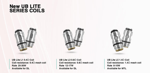 Those UB Lite Coils are perfectly compatible with Lost Vape UB Lite 30W Kit. Brand: Lost Vape Unit: 5pcs/pack Resistance: L5 1.4ohm, L3 0.8ohm, L1 0.4ohm Package: Simple Packing