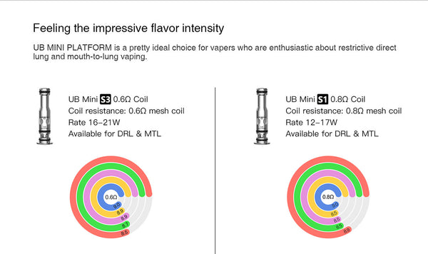 Those Lost Vape UB Mini Replacement Coils are perfectly compatible with Orion Mini Kit. Brand: Lost Vape Unit: 5pcs/pack Resistance: S1 0.8ohm(12-17w) available for RDL & MTL, S2 1.0ohm(9-13w) available...