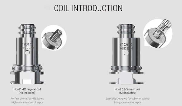 These Replacement Coil Head are perfectly compatible with SmokNord Pod Kit, Smok Nord Replacement Coils include 0.6ohm mesh coil, 0.8ohm mesh coil and 1.4ohm regular coil. The mesh coil brings you sub-ohm vaping with massive clouds and pure flavor than ever. The regular coil is designed for MTL vaping. You can enjoy the different vaping experiences from these coils. Each pack contains 5pcs of coils.