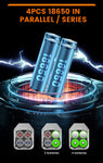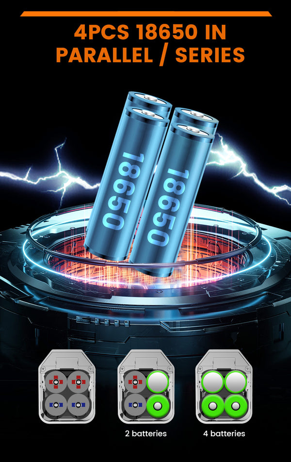 Battery Configuration: Quad 18650 Batteries - Not Included