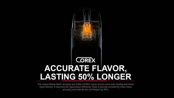2. Accurate Flavor Lasting 50% Longer, Corex Heating Tech