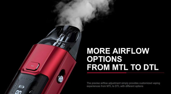 Vaporesso LUXE XR Max Kit which innovative COREX heating technology, Luxe XR Max Kit power by built-in a 2800mAh battery with Max 80W output and Type-C charging. Supported by the COREX heating technology and AXON Chip, it can ensures faster heating, boosted flavor and bigger clouds. It adopts the 0.4ohm/0.2ohm Mesh LUXE X Pods with customized drip tips for MTL/DL experience. You can easily switch the pod to adjust the airflow from MTL to DTL. Its slim & crystal clear body with 3 layers of coating is durable enough to resist daily abrasion & dropping. Moreover, its auto lock function will lock the device after 8S pressing and secured mode to protect from accidentally misfiring.